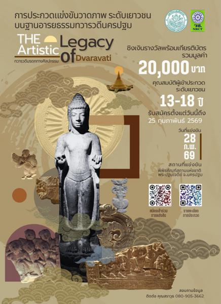 มหาวิทยาลัยศิลปากร ร่วมกับ สำนักงานการวิจัยแห่งชาติ (วช.) ขอเชิญนักเรียนมัธยมศึกษา สมัครเข้าร่วมการแข่งขันวาดภาพ ระดับเยาวชน บนฐานอารยธรรมทวารวดีนครปฐม หัวข้อ "The Artistic Legacy of Dvaravati ทวารวดี มรดกทางศิลปกรรม" ชิงเงินรางวัลมูลค่ารวม 20,000 บาท พร้อมใบประกาศนียบัตร