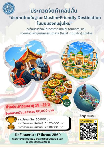 ประกวดคลิปวิดีโอสั้น "ประเทศไทยในฐานะจุดหมายปลายทางที่เป็นมิตรต่อชาวมุสลิม (Muslim-Friendly Destination) ในมุมมองของคนรุ่นใหม่"